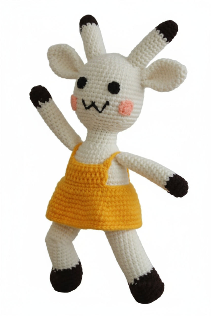 Meet Karla, an adorable crocheted goat ready to steal hearts! Hand-crafted with soft yarn and charming details, this pint-sized pal features a sweet expression and perfectly imperfect personality. Karla makes the ideal cuddle buddy for kids and collectors alike, or a delightful handmade gift that shows you care. Each stitch is made with love, ensuring every Karla is wonderfully unique. Perfect for brightening shelves, nurseries, or anywhere that needs a dose of whimsy and warmth.