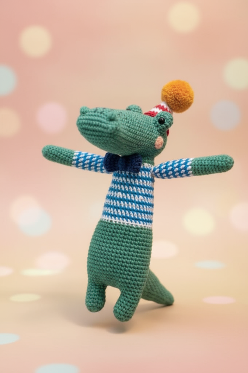 Koko the Croc is ready for adventure! This cheerful crocodile companion features a friendly grin and vibrant colors that spark imagination in young explorers. Perfect for cuddles, playtime, or bedtime stories, Koko brings joy and comfort wherever adventures lead. Soft, huggable, and designed with safety in mind, this delightful croc is the ideal friend for children who love wildlife and whimsy.