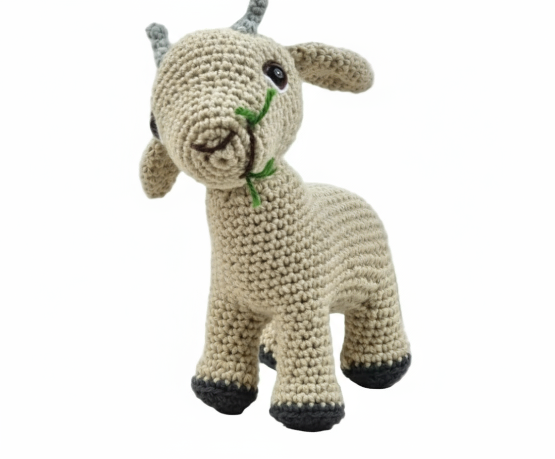 Meet Milo, the adorable crocheted goat companion! Handcrafted with soft yarn and charming details, Milo features a friendly face and floppy ears that make this little guy irresistible. Perfect for cuddles, imaginative play, or as a delightful nursery decoration, Milo brings warmth and whimsy to any space. Whether you're gifting this quirky goat to a little one or keeping him as your own fuzzy friend, Milo is sure to become a beloved favorite. Gentle, huggable, and full of personality!
