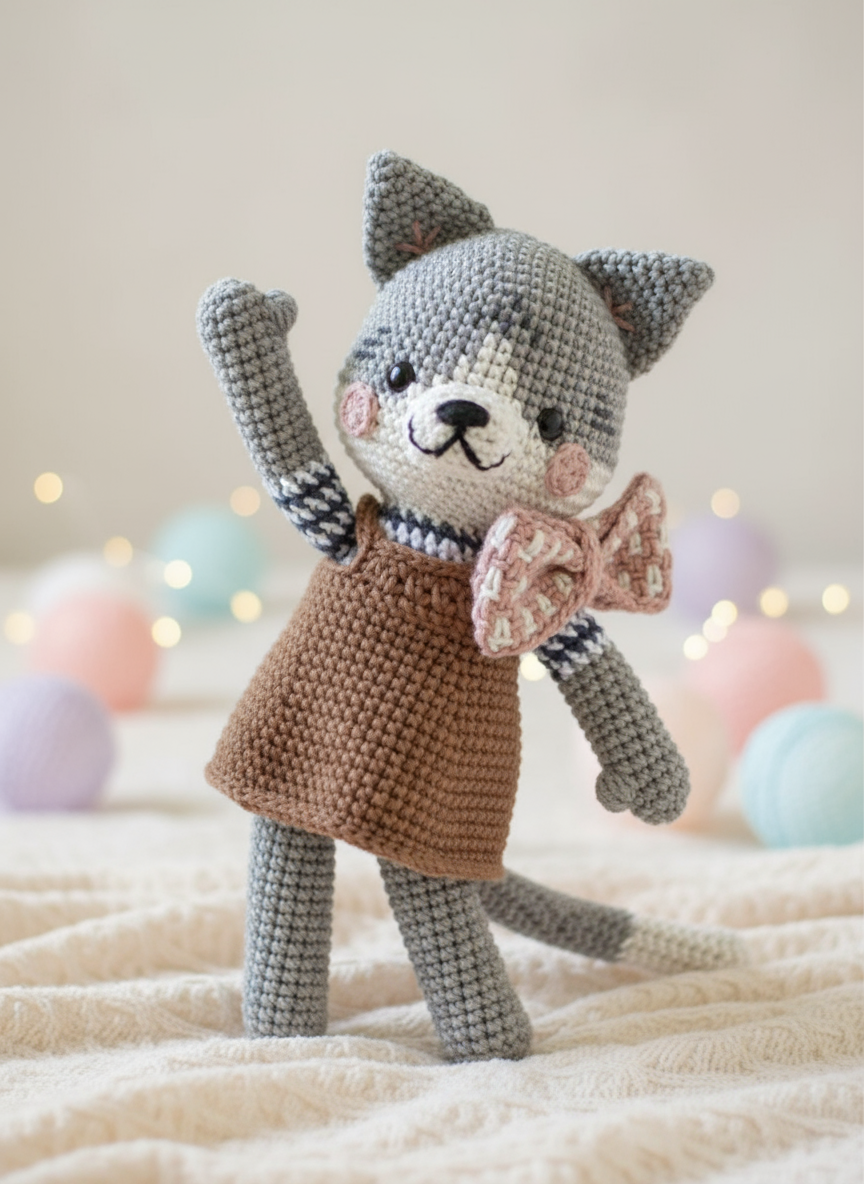 Meet Zara the Queen Cat, a delightfully adorable crochet companion ready to rule any child's heart! Hand-crafted with cozy yarn and charming details, this whimsical feline features expressive eyes and a regal personality that brings imagination to life. Perfect for cuddling, displaying, or gifting to cat lovers of all ages, Zara combines soft comfort with playful character. Each stitch is made with care, creating a one-of-a-kind toy that's as unique as royalty itself. Let Zara reign supreme in your collection!